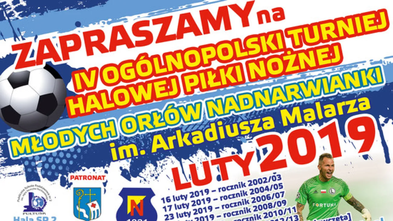 W lutym i na początku marca 2019 roku odbędzie się już IV edycja ogólnopolskich Turniejów Halowych Piłki Nożnej Młodych Orłów Nadnarwianki Pułtusk im. Arkadiusza Malarza w Pułtusku