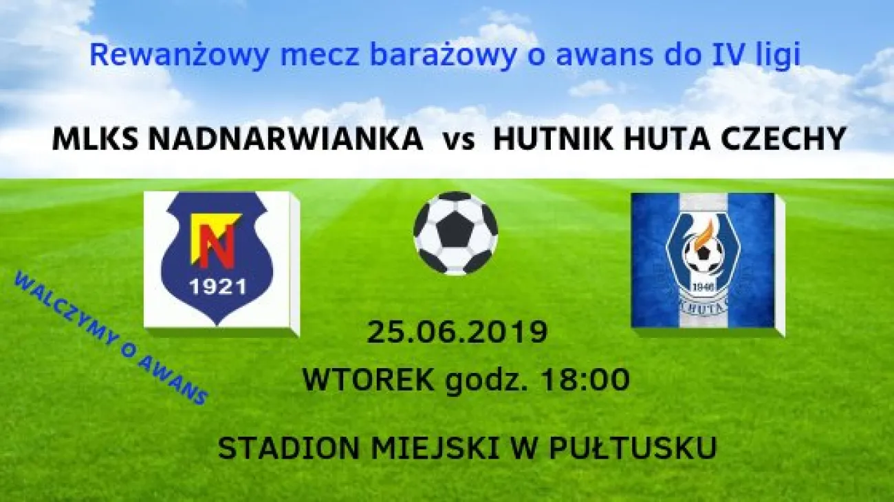 Spotkanie rewanżowe odbędzie się we wtorek 25 czerwca o godz. 18:00 na Stadionie Miejskim w Pułtusku.