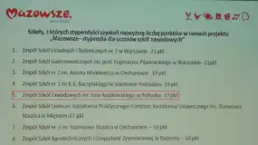 W bieżącym roku szkolnym 22 uczniów Zespołu Szkół Zawodowych im. Jana Ruszkowskiego w Pułtusku otrzymało stypendium dla uzdolnionej młodzieży szkół zawodowych w ramach unijnego programu ,,Mazowsze – stypendia dla uczniów szkół zawodowych”.