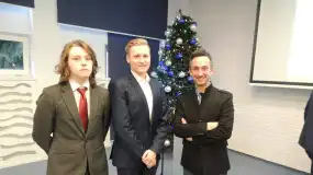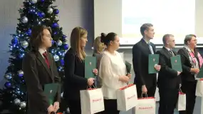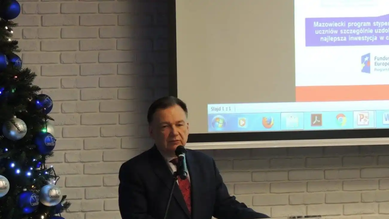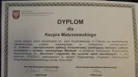 Kacper przedstawił zgromadzonym gościom swój innowacyjny projekt – aplikację E-senior, stworzoną pod kierunkiem opiekunki – p. Doroty Sobocińskiej. Konradowi natomiast umowę stypendialną wręczył Marszałek Województwa Mazowieckiego – p. Adam Struzik. Odniesionych sukcesów pogratulowała uczniom także p. Zofia Dembska – dyrektor Departamentu Edukacji Publicznej i Sportu Urzędu Marszałkowskiego w Warszawie. Warto dodać, że Zespół Szkół Zawodowych im. Jana Ruszkowskiego zajął 4 miejsce w województwie mazowieckim w rankingu szkół z największą ilością stypendystów.