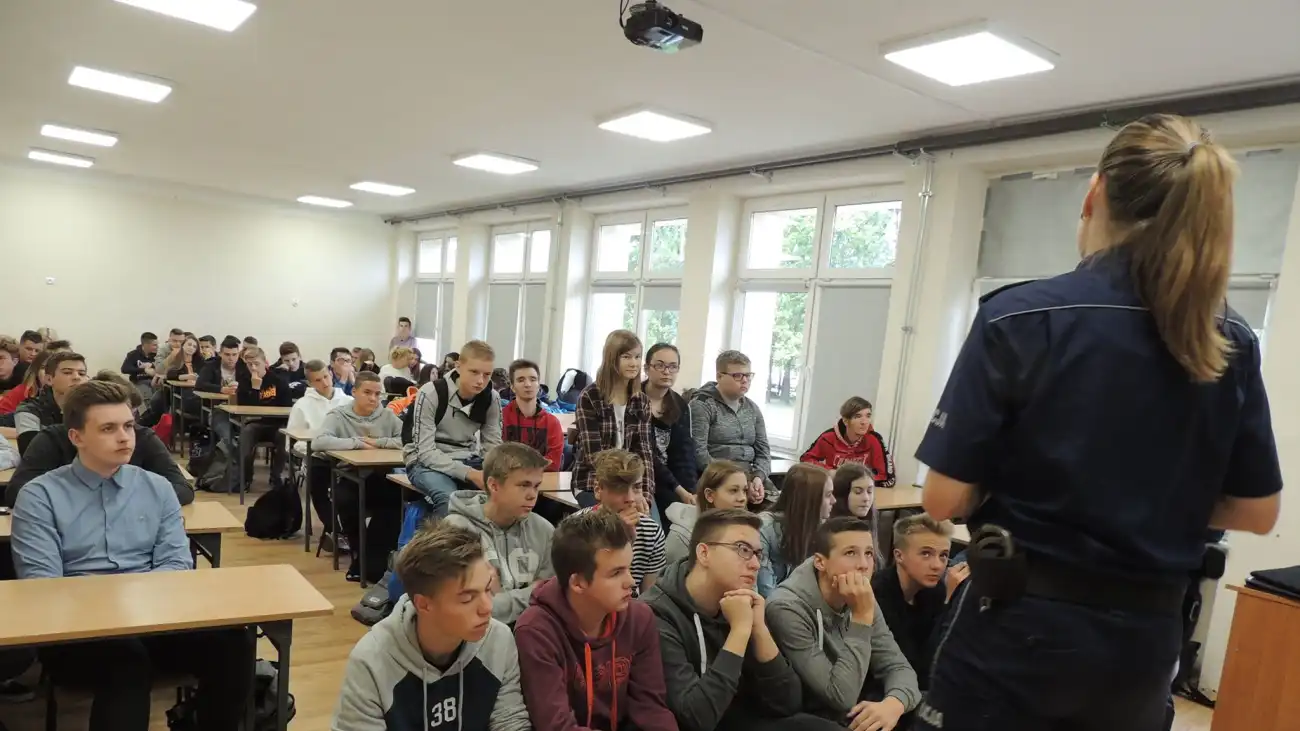 3 października 2018 r. uczniowie klas pierwszych Zespołu Szkół Zawodowych im. J. Ruszkowskiego w Pułtusku wzięli udział w spotkaniu z funkcjonariuszami Komendy Powiatowej Policji w Pułtusku - Katarzyną Grzechnik i Arkadiuszem Chmielem.