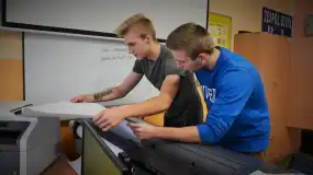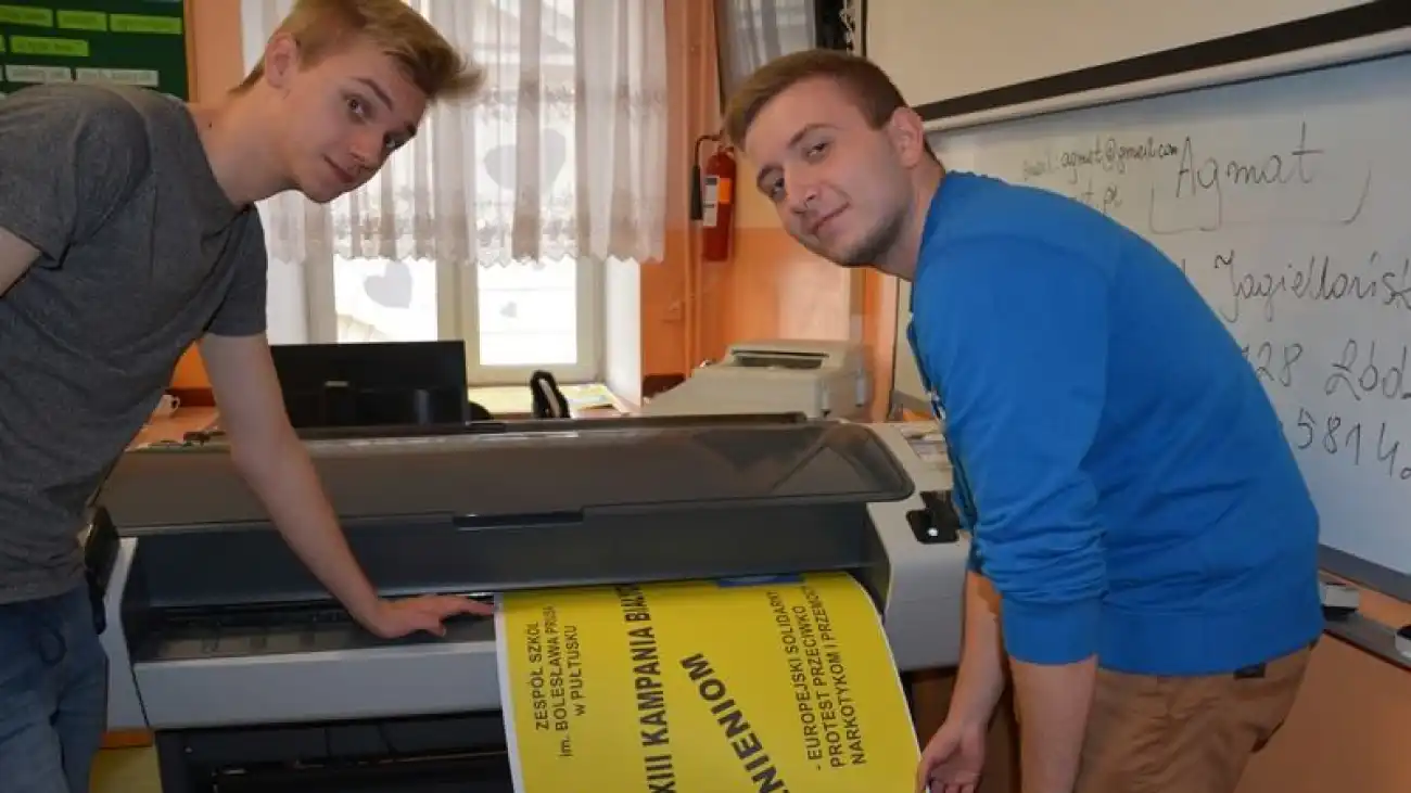 Dzięki profesjonalnie wyposażonej pracowni i umiejętnościom informatycznym uczniowie mają możliwość zaprojektowania i wydrukowania różnych elementów stanowiących oprawę uroczystości np. zaproszenia, plakaty, banery, ulotki, zakładki itd. Na wyposażeniu szkoła posiada m.in. PLOTER, czyli drukarkę wielkoformatową, na której powstają kolorowe elementy dekoracyjne szkolnych akcji i uroczystości. Przewodnikiem młodzieży w zagadnieniach związanych ze sztuką reklamy jest pani Jolanta Jadaś.