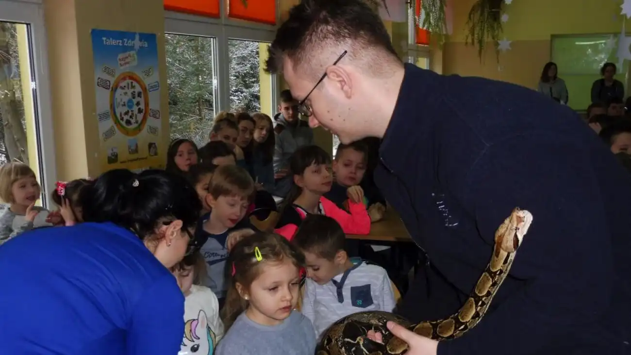 Spotkanie z gadami czyli żywa lekcja przyrody w szkole w Dzierżeninie
