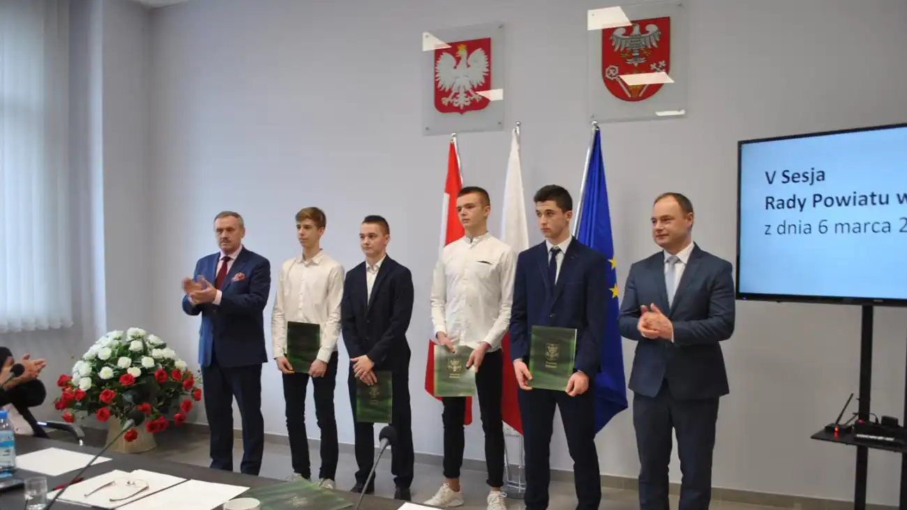 W dniu 6 marca 2019 r., podczas V Sesji Rady Powiatu w Pułtusku Przewodniczący Rady Powiatu Tadeusz Nalewajk i Starosta Jan Zalewski wraz z dyrektorami pułtuskich szkół średnich wręczyli stypendia Starosty przyznane na podstawie „Programu wspierania edukacji uzdolnionych uczniów” oraz „Regulaminu w sprawie przyznawania stypendiów sportowych”