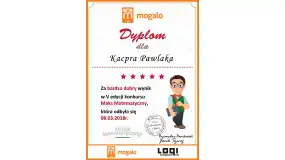 W konkursie wzięli udział uczniowie klasy II TI b. Kacper Pawlak zajął I miejsce w województwie mazowieckim, a 22 w Polsce. Natomiast na II miejscu uplasował się Dawid Wolniak. Uczniów z klasy II Ti b do konkursu przygotowała nauczycielka matematyki – p. Marlena Wasilewska.