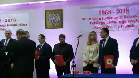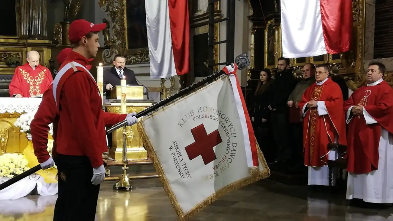 W sobotę, 24 listopada br., w Pułtusku, odbyła się uroczystość obchodów 50-lecia klubu Honorowych Dawców Krwi Polskiego Czerwonego Krzyża ,,Kropla Życia'' w Pułtusku oraz 60- lecia Honorowego Krwiodawstwa w Polsce. Przed uroczystościami w Akademii Humanistycznej w Bazylice kolegiackiej odbyła się uroczysta msza św. podczas, której dokonano poświęcenia proporca klubu HDK PCK ,,Kropla Życia'' w Pułtusku.