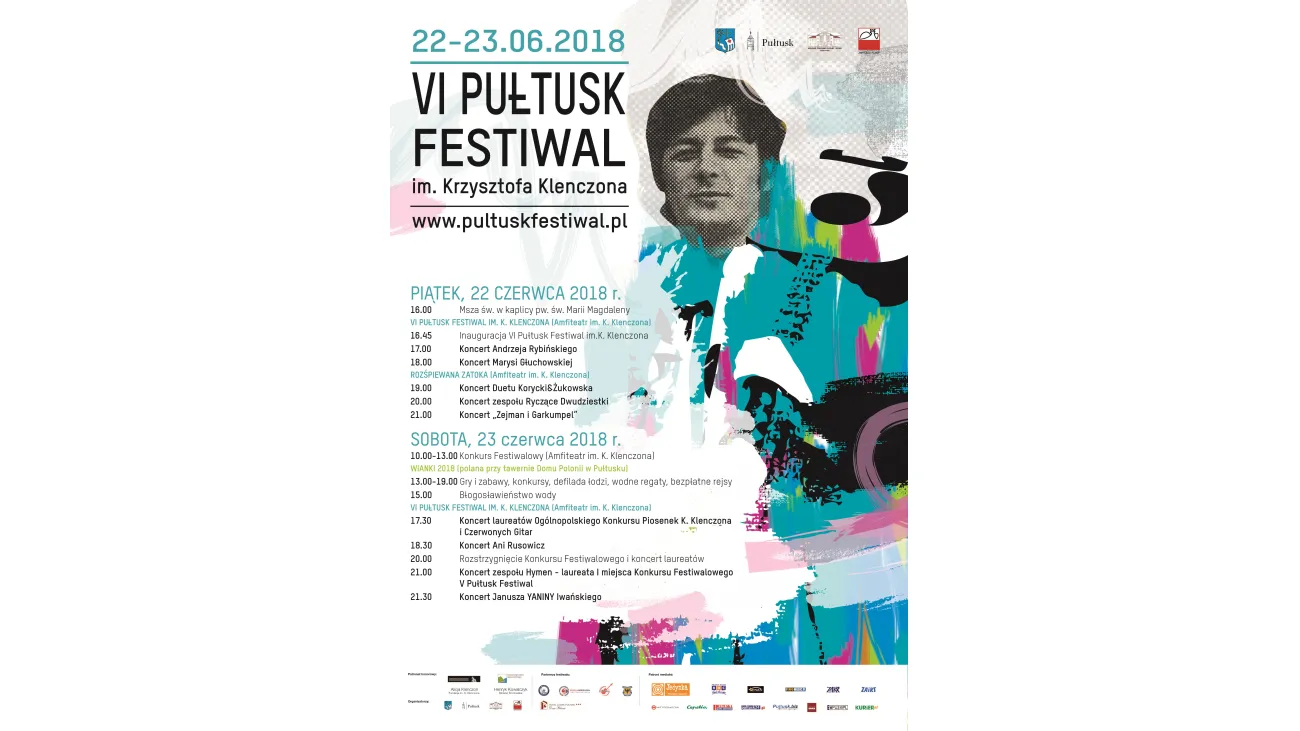 Kilka dni koncertów, konkursy muzyczne dla młodych wykonawców i wspaniała zabawa w rytmie porywającej muzyki na VI Pułtusk Festiwal im. Krzysztofa Klenczona! Zbliża się kolejna, już 6. edycja ogólnopolskiego Festiwalu im. Krzysztofa Klenczona. Zapraszamy 22 - 23 czerwca 2018 roku do Pułtuska.
