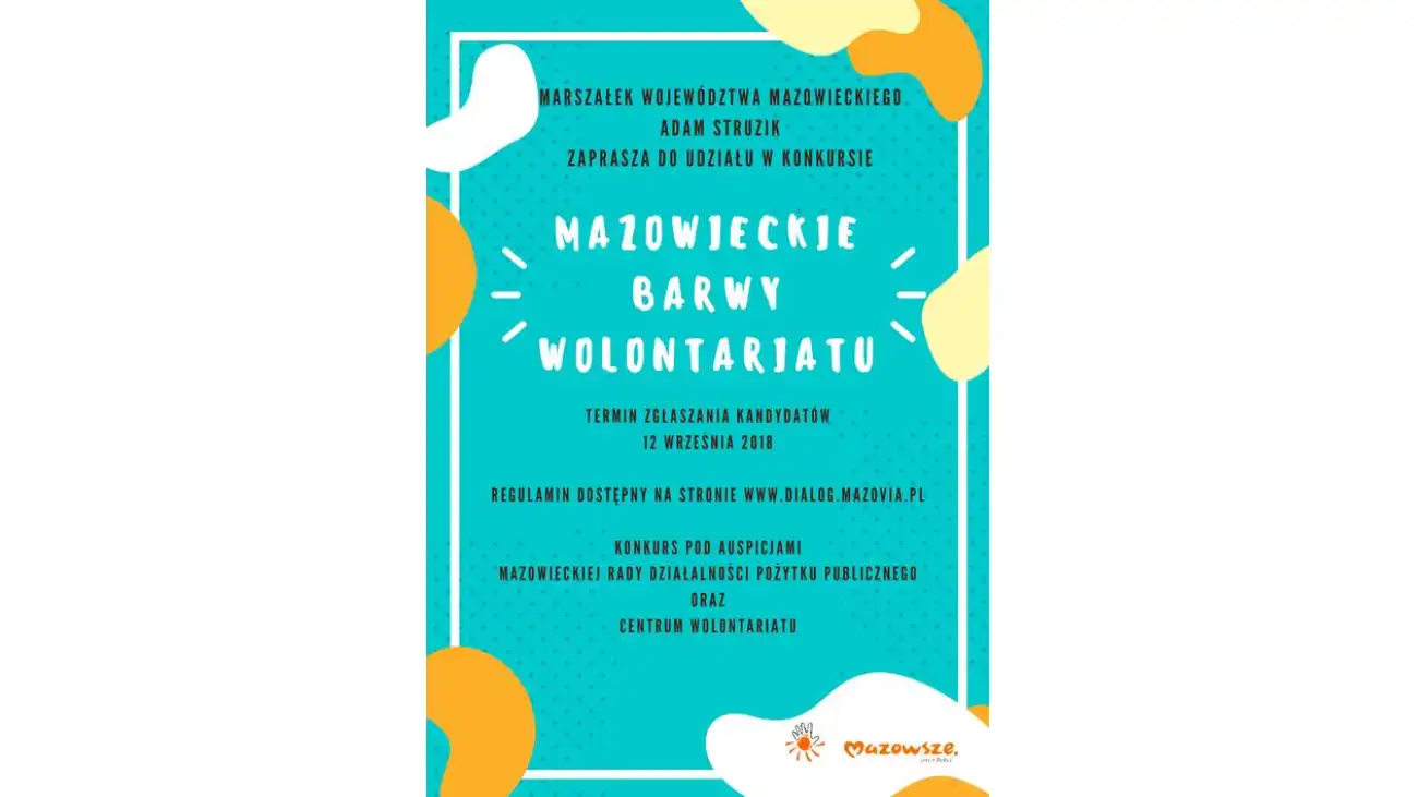 Marszałek Województwa Mazowieckiego już po raz ósmy organizuje edycję konkursu „Mazowieckie Barwy Wolontariatu”, która ma na celu popularyzowanie i wyjaśnianie znaczenia wolontariatu, propagowanie inicjatyw mających na celu podniesienia prestiżu wolontariatu, poszerzenie wśród mieszkańców Mazowsza wiedzy o rodzajach wolontariatu i zakresu pracy wolontariuszy oraz zachęcanie mazowszan do podejmowania aktywności wolontariackiej.