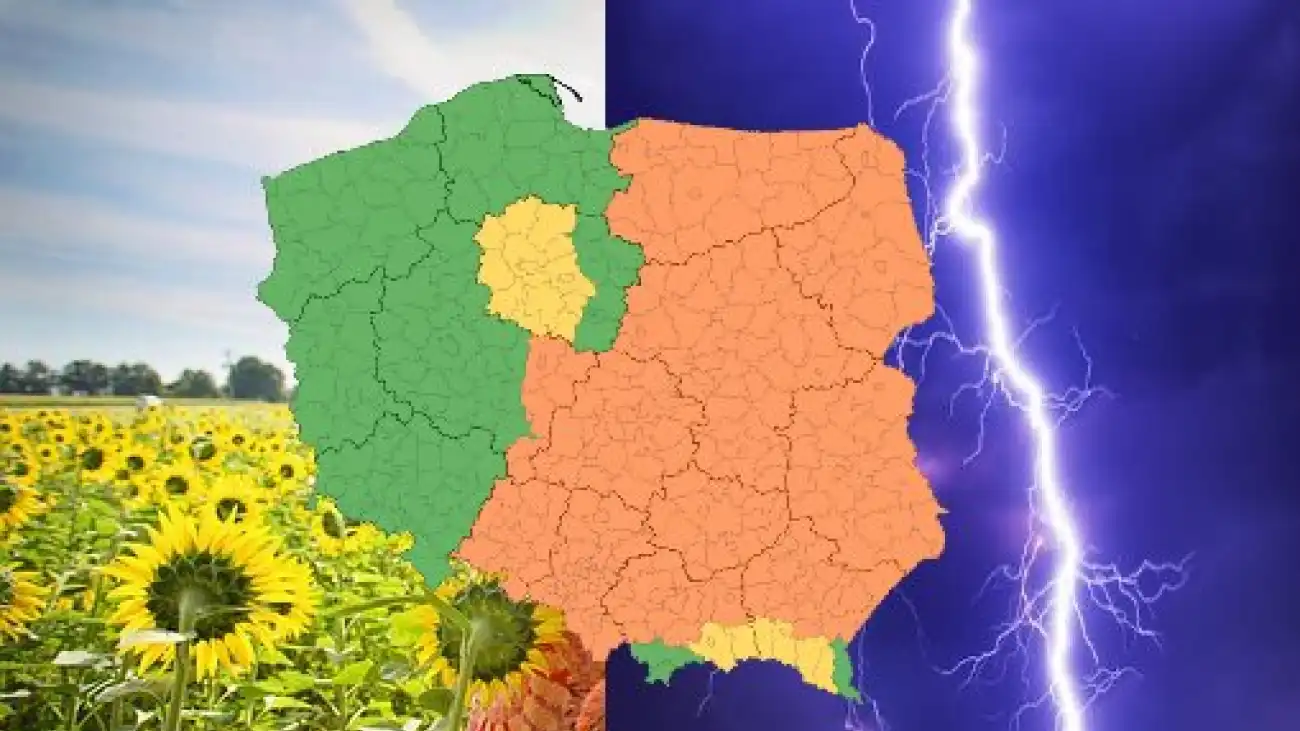 Polska została dzisiaj podzielona na dwie części tą bez ostrzeżeń i tą z ostrzeżeniami drugiego stopnia przed upałami i burzami z gradem. Ostrzeżenie wydano dla wielu powiatów środkowej i wschodniej Polski.