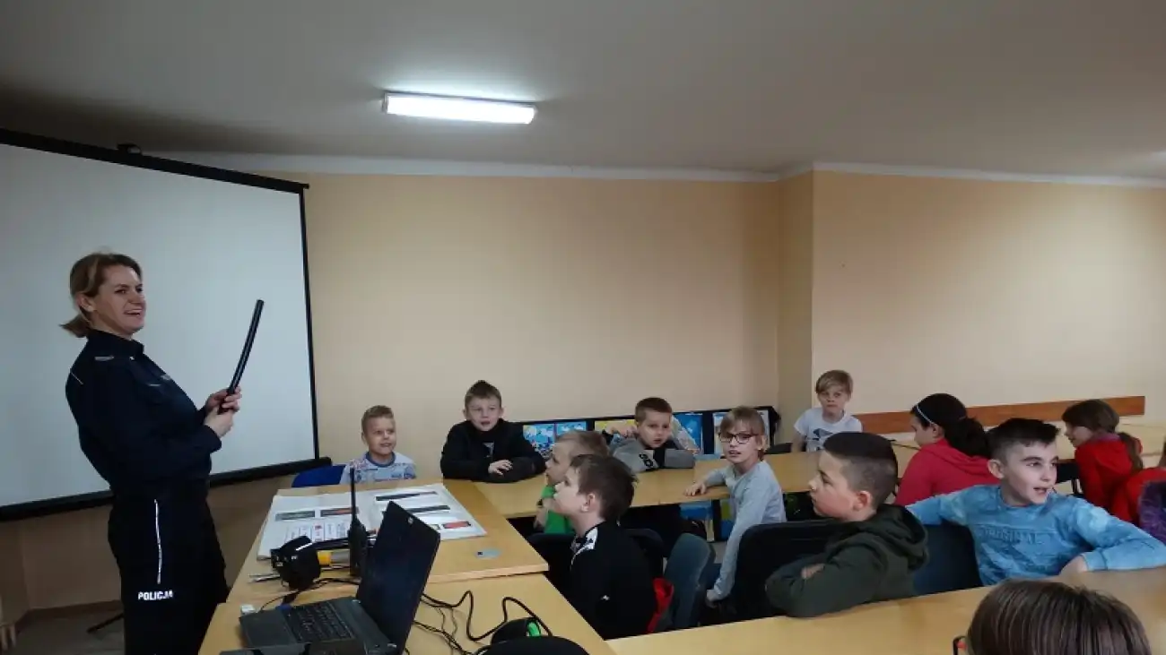 W świetlicy Komendy Powiatowej Policji w Pułtusku, uczniowie Publicznej Szkoły Podstawowa Nr 1 im. Klaudyny Potockiej w Pułtusku uczestniczyli w spotkaniu profilaktycznym, aby porozmawiać o zasadach bezpieczeństwa oraz zobaczyć jak pracują pułtuscy policjanci.