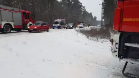 Dzisiaj (9.01) w godzinach porannych na trasie Psary - Pułtusk, w związku ze złymi warunkami panującymi na drodze doszło do dachowania samochodu osobowego.