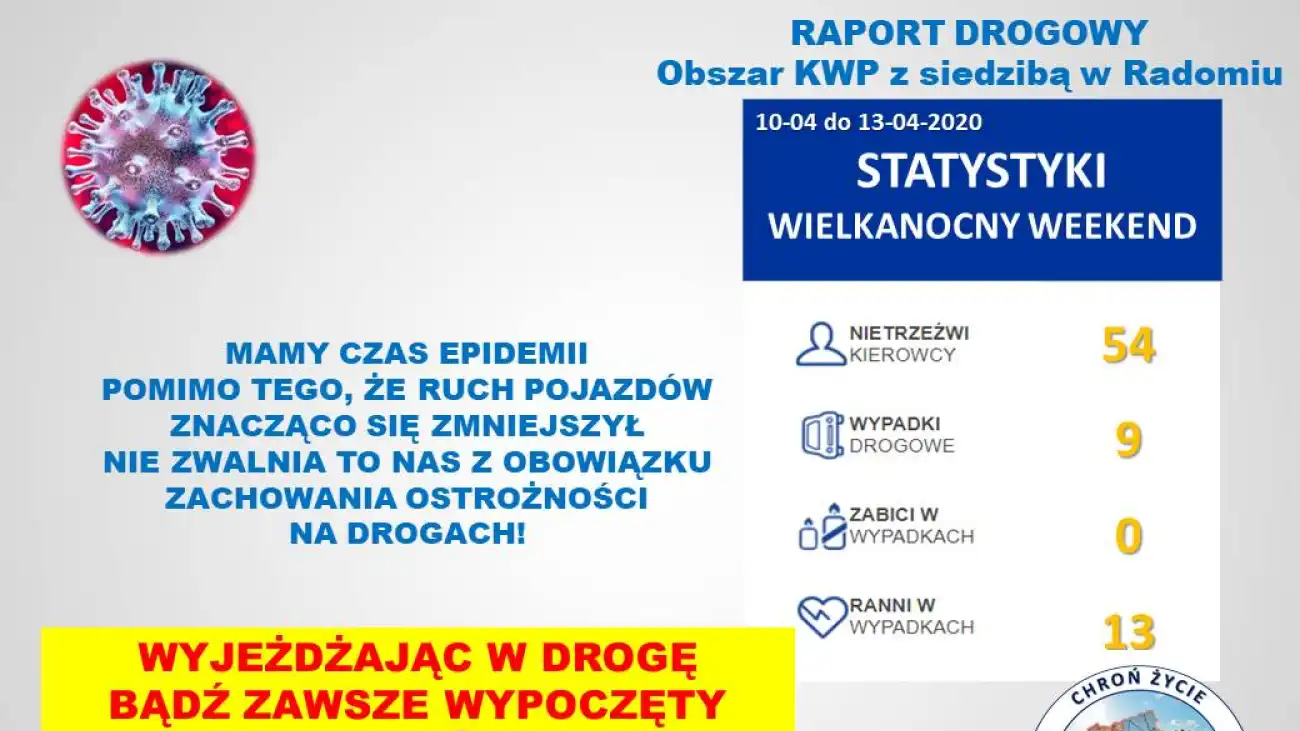 To były wyjątkowe święta. Spędzaliśmy je często przed telefonem rozmawiając z najbliższymi w czasie videokonferencji poprzez popularne komunikatory internetowe. Policjanci, którzy w tym czasie pełnili służbę, zwracali uwagę nie tylko na to, czy jeździmy bezpiecznie, ale też na to, czy nie opuszczaliśmy domów łamiąc zasady kwarantanny przy okazji narażając bez powodu inne osoby na niebezpieczeństwo. Od piątku na drogach Mazowsza doszło do 9 wypadków, w których rannych zostało 13 osób. Nikt nie zginął. Na ulicach było więcej policyjnych patroli, a sytuację z powietrza monitorowały drony.