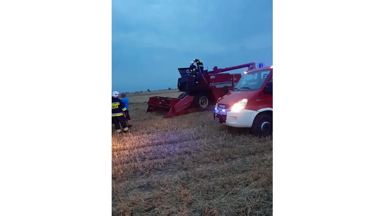 foto: FB OSP Pniewo/pożar kombajnu zbożowego w miejscowości Mystkówiec-Szczucin