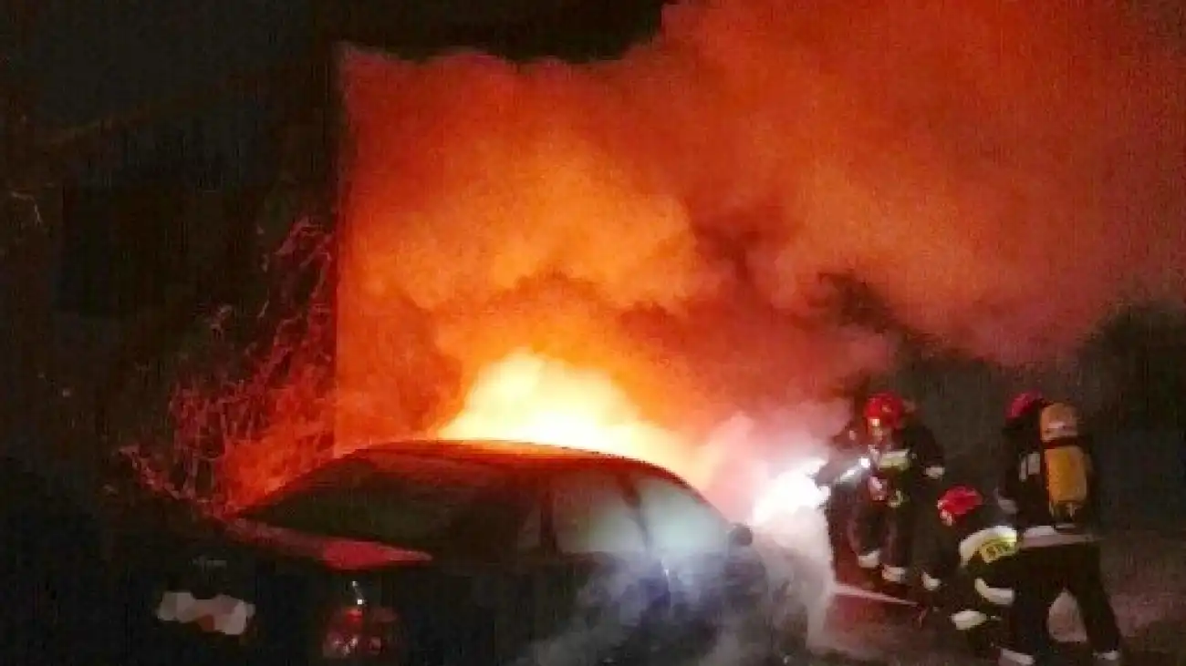 Mieszkańcy ulicy Willowej w Ciechanowie przeżyli chwile grozy. Na osiedlowym parkingu nieopodal bloku jeden z samochodów stanął w płomieniach.
