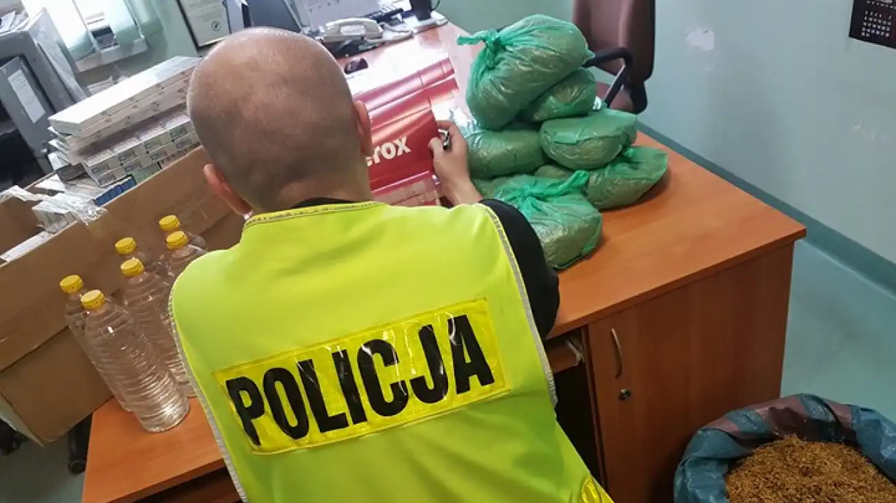 Policjanci wydziału kryminalnego makowskiej policji zabezpieczyli 18 kg krajanki tytoniowej, 6 litrów alkoholu oraz 5800 sztuk papierosów bez polskich znaków akcyzy.