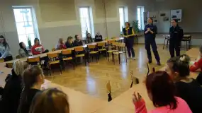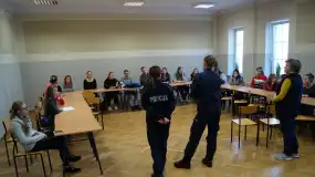 Policjanci podczas spotkania przekazali ważne informacje o potencjalnych zagrożeniach na jakie mogą być narażeni wolontariusze oraz jak postępować, aby nie stać się ofiarami przestępstw.