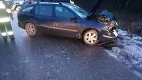 Na trasie Psary-Pułtusk około godz. 7.00 doszło do zderzenia dwóch samochodów zielonego marki Daewoo Tico z granatowym Renault Laguna.