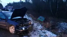 W wyniku zderzenia Tico wylądował w przydrożnym rowie. Zniszczone zostały obydwa samochody. Poszkodowane zostały dwie osoby.