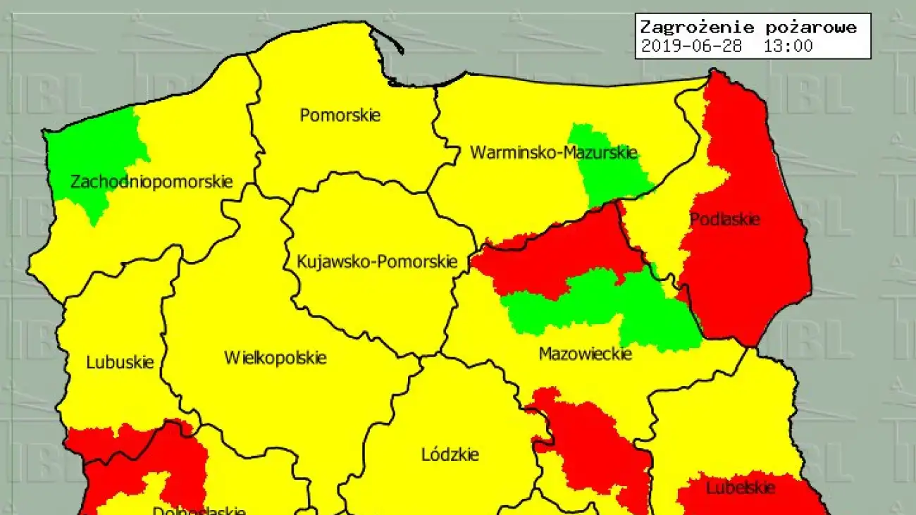 Instytut Badawczy Leśnictwa, który zajmuje się również badaniem zagrożenia pożarowego lasu codziennie opracowuje stan wilgotności ściółki leśnej na podstawie danych zgłoszonych przez jednostki terenowe Lasów Państwowych i na tej podstawie aktualizuje codziennie zagrożenie pożarowe lasów w Polsce. Zobacz, na mapie w galerii, gdzie w kraju występuje największe zagrożenie lasu pożarem (Dane z dn. 28 czerwca 2019 - Instytut Badawczy Leśnictwa)