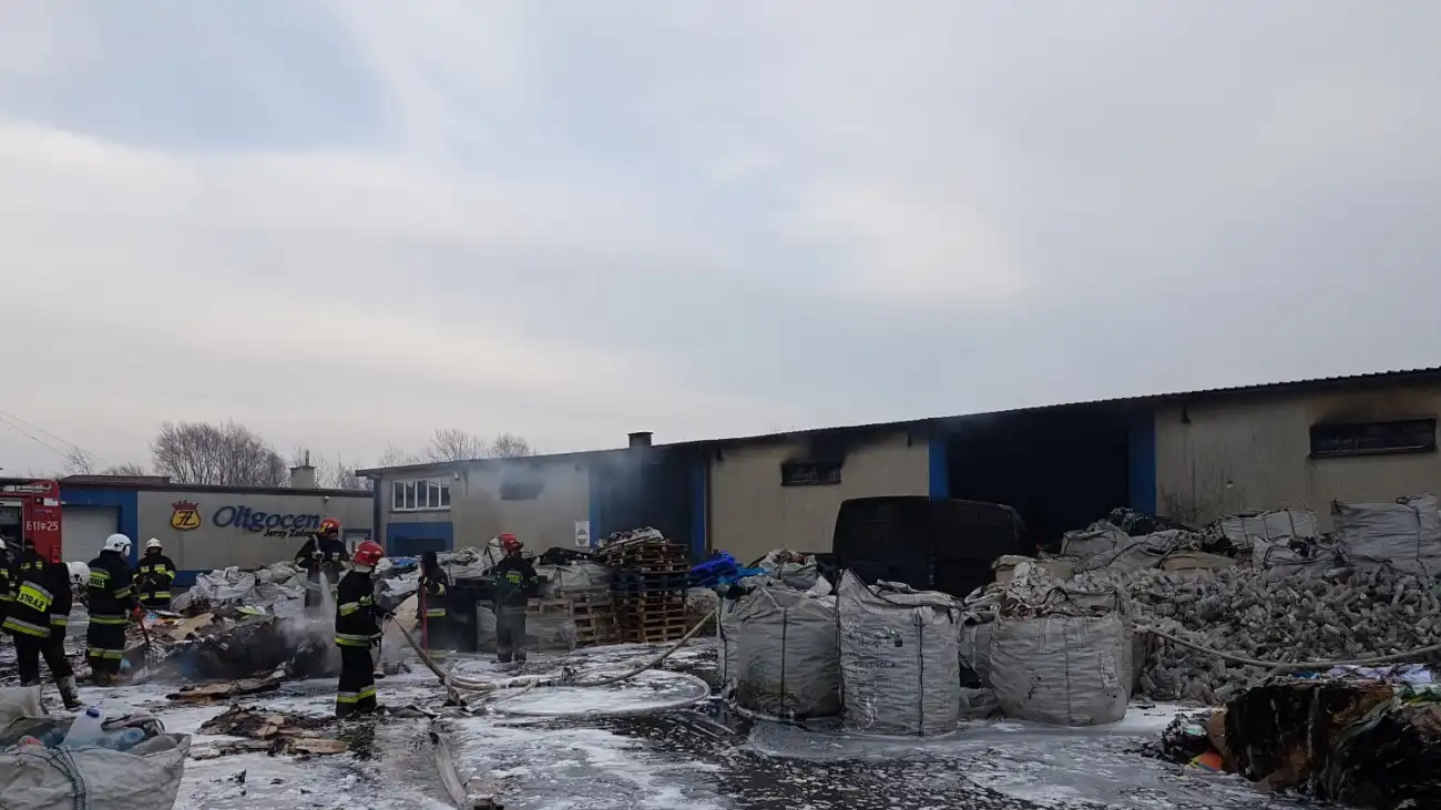 W pożarze hali brało udział 15 zastępów Państwowej Straży Pożarnej (30 strażaków) oraz 11 zastępów z OSP ( 52 strażaków).