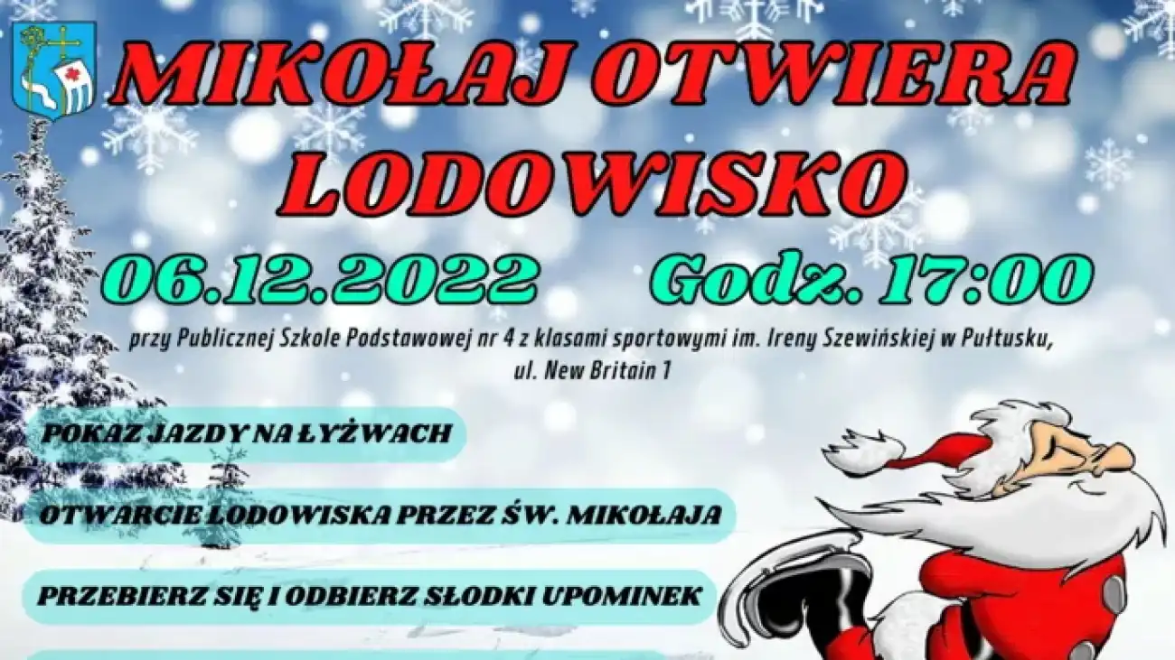 Już w najbliższy wtorek 6 grudnia br (Mikołajki) o godzinie 17.00 zostanie oficjalnie otwarte lodowisko miejskie w Pułtusku na sezon zima 2022/23.