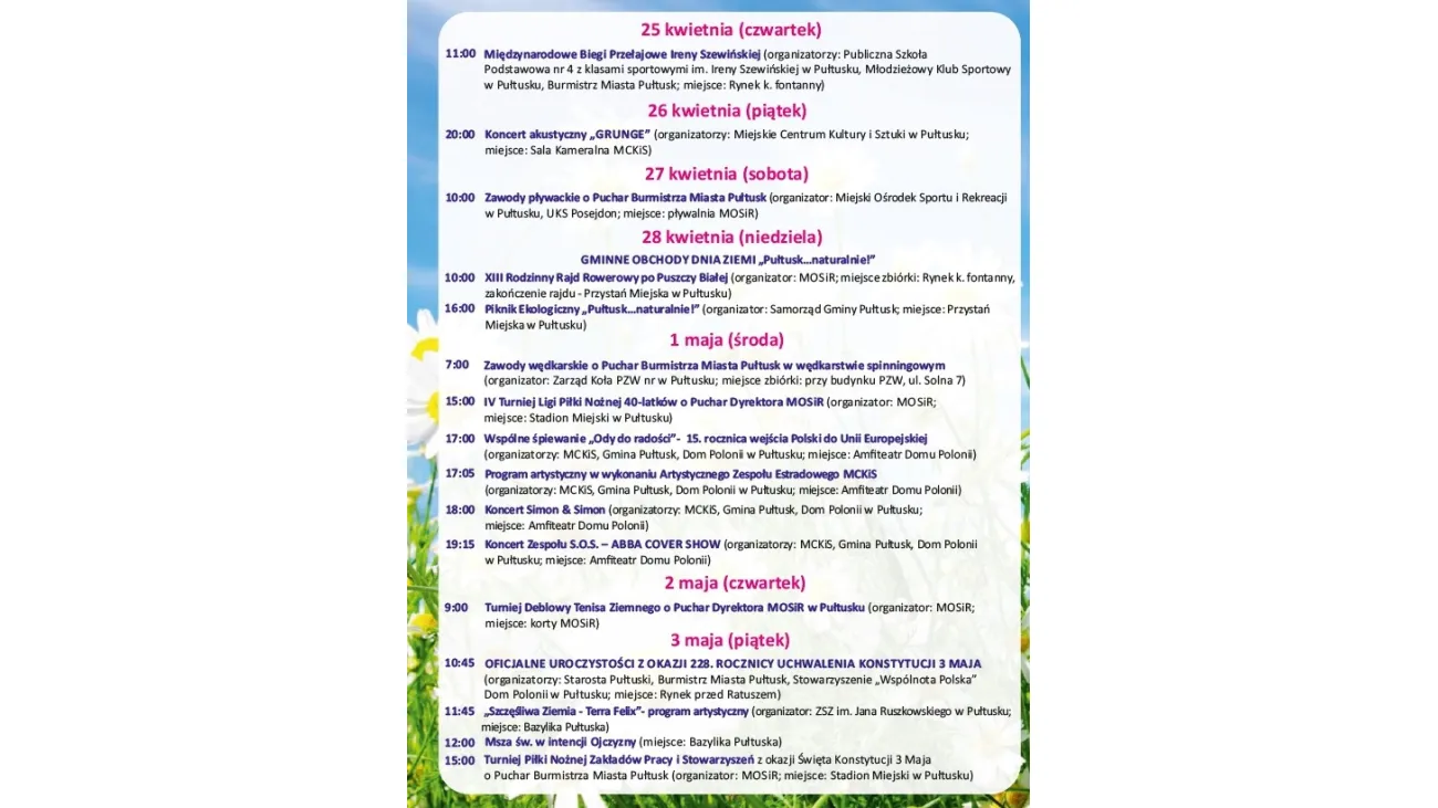 Od końca kwietnia w Pułtusku rozpoczną się oficjalne imprezy i świętowanie majówki.