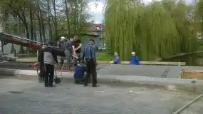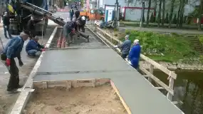 W dniu 7 maja br. wykonano betonowanie uprzednio uzbrojonej drugiej kapy chodnikowej do granicy krawężnika mostu Świętojańskiego, usytuowanej od strony północnej.