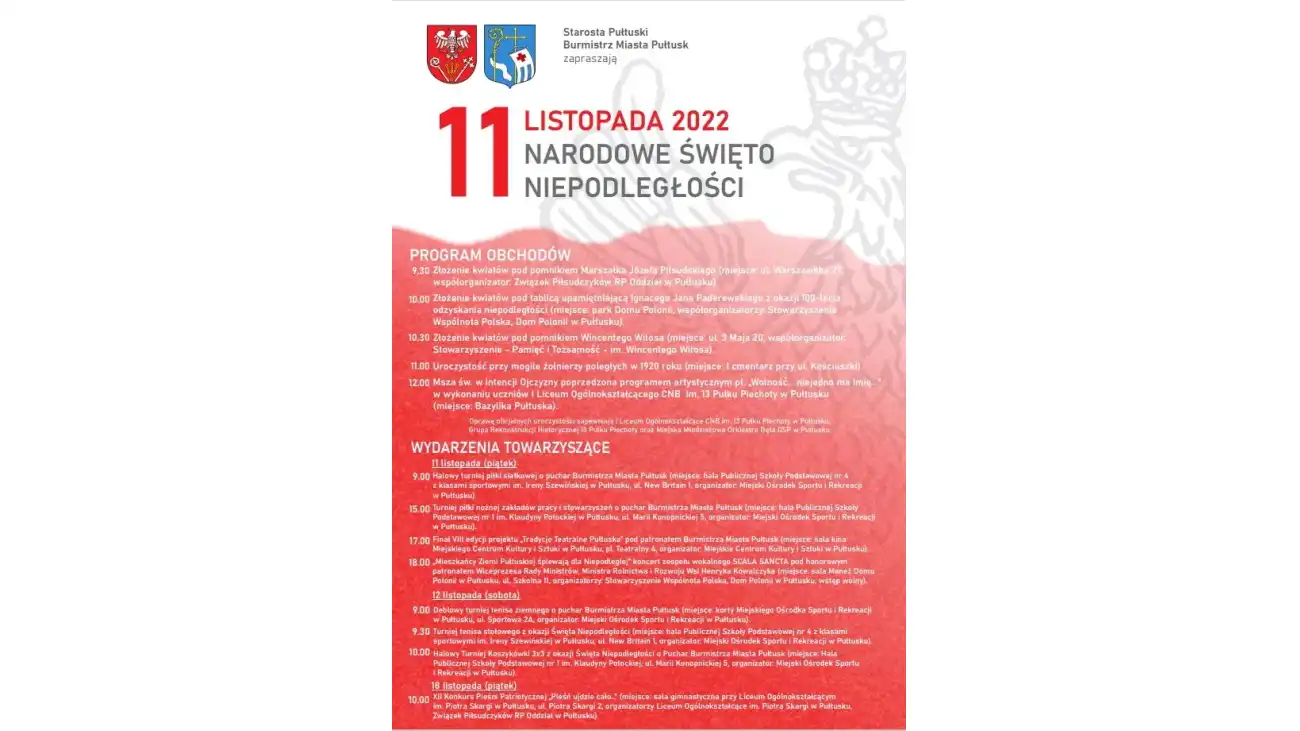 Uroczystości z okazji Narodowego Święta Niepodległości w Pułtusku. Sprawdź program obchodów 11 listopada 2022 roku.