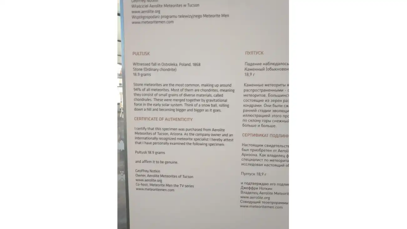 Pułtuski Meteoryt w Centrum Nauki Kopernik
