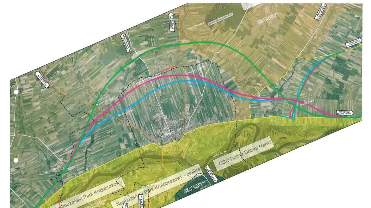 Poniżej zamieszczamy mapę z proponowaną trasą obwodnicy Pułtuska oraz w formie PDF