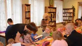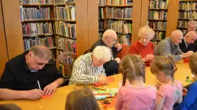 W ramach Ferii w Bibliotece odbyły się warsztaty dla dzieci z udziałem seniorów Domu Dziennej Opieki Senior - Wigor.
