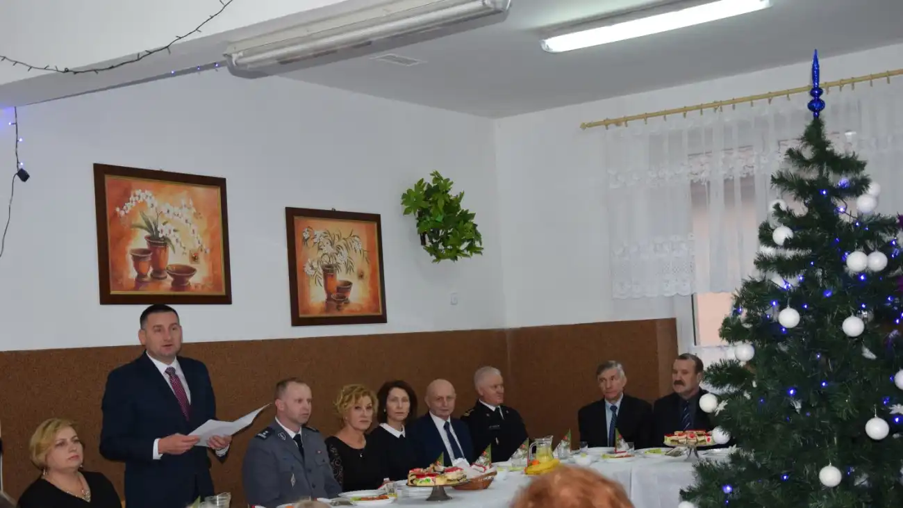 Na początku uroczystości Wójt Gminy Winnica niezwykle serdecznie przywitał wszystkich zaproszonych gości oraz złożył życzenia z okazji zbliżających się świąt Bożego Narodzenia. Życzenia świąteczne oraz podziękowania dla gminy Winnica za dobrą współpracę w imieniu Starosty Powiatu Pułtuskiego złożyła Pani Katarzyna Jankowska. Następnie uczniowie Zespołu Placówek Oświatowych w Winnicy wykonali koncert kolęd przygotowany pod kierunkiem Pani Moniki Paszkowskiej. Wspólne kolędowanie wprowadziło wszystkich zebranych w piękną atmosferę Świąt Bożego Narodzenia. Nie zabrakło również słodkich upominków którymi byli obdarowani wszyscy uczestniczący w spotkaniu wigilijnym. W drugiej części spotkania po odczytaniu Ewangelii przez Wójta Gminy Winnica odbyło się wspólne łamanie opłatkiem i składanie sobie życzeń. I tak ten niezwykły czas upłynął w ciepłej i serdecznej atmosferze.