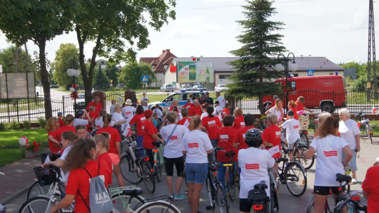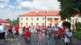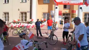 Na starcie rajdu wszyscy uczestnicy odebrali pamiątkowe Biało-Czerwone koszulki i o godz.16.00 z placu Urzędu Gminy wyruszyli w stronę Piskorni. Po około godzinie rowerzyści dotarli do mety.