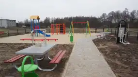 Najmłodsi mieszkańcy gminy będą mogli rozładować energię i pobawić się na placu zabaw o charakterze sprawnościowym, gdzie zamontowano zestaw ze zjeżdżalnią, wielofunkcyjne urządzenie zabawowe, sześciokąt z pajęczyną i ścianką wspinaczkową, potrójną równoważnię oraz huśtawkę, która zapewni niezapomnianą zabawę zarówno maluchom jak i starszakom.