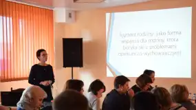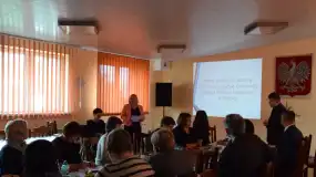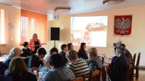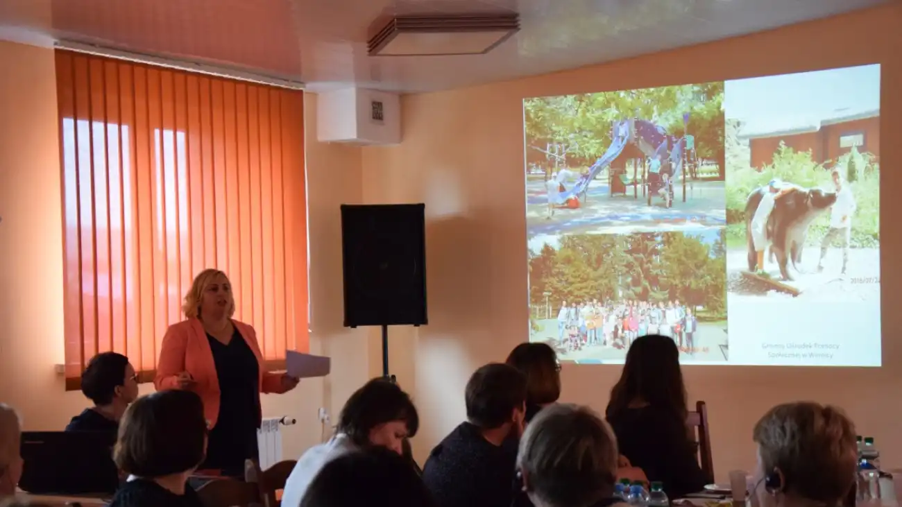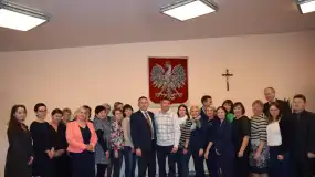 Gości przywitał gospodarz gminy - Wójt Mariusz Kowalewski, a następnie przedstawił krótki zarys i potencjały gminy Winnica. W dalszej części spotkania Kierownik Gminnego Ośrodka Pomocy Społecznej w Winnicy - Wioletta Zawadzka wraz z pracownikami przedstawiła prezentację nt.: ” Pomoc społeczna wczoraj i dziś na przykładzie Gminnego Ośrodka Pomocy Społecznej w Winnicy”. Goście byli zainteresowani jak funkcjonuje pomoc społeczna w gminie wiejskiej. Obecnie w wyniku reformy nowo połączone ukraińskie gminy (gromady) przejmują uprawnienia i rozpoczynają prace na tworzeniem systemu pomocy społecznej na Ukrainie. Model pomocy społecznej przedstawiony na przykładzie gminy Winnica wzbudził duże zainteresowanie wśród gości. Szeroki zakres działań jaki realizują pracownicy GOPS w Winnicy spowodował ożywioną dyskusję. Pracownicy GOPS chętnie dzielili się swoim doświadczeniem, odpowiadając na zadawane pytania. Na zakończenie Wójt Gminy - Mariusz Kowalewski wręczył przedstawicielowi gości symboliczny upominek - album dot. dziejów Mazowsza i gminy Winnica.